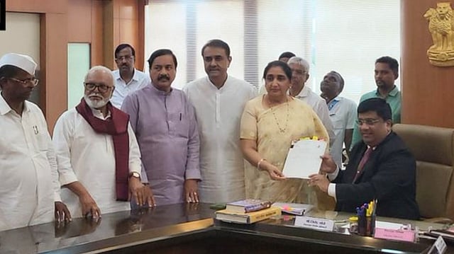 पुढारी ऑनलाईन डेस्क: राष्ट्रवादी काँग्रेसच्या नेत्या आणि महाराष्ट्राचे उपमुख्यमंत्री अजित पवार यांच्या पत्नी सुनेत्रा पवार मुंबईतील विधानभवनात पोहोचल्या आहेत. दरम्यान मंगळवारी 25 जून रोजी होणाऱ्या राज्यसभेच्या पोटनिवडणुकीसाठी सुनेत्रा पवार यांनी आज (दि.१३ जून) विधानभवनात उमेदवारी अर्ज दाखल केला आहे. या संदर्भातील वृत्त 'एएनआय'ने दिले आहे.