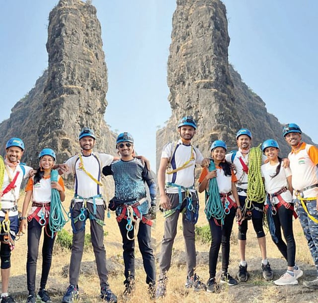 वाडा : पुढारी वृत्तसेवा : सह्याद्री खोर्यात आरोहणासाठी कठीण श्रेणीत गणला जाणार्या 240 फूट उंची असलेल्या पहिणे नवरी सुळक्यावर फोर्ट एडव्हेंचर पुणे आणि मावळे माउंटन रेंजर्स नाशिकच्या गिर्यारोहकांनी यशस्वीरीत्या आरोहण केले. युवा गिर्यारोहकांनी अभिमानाने तिरंगा फडकावत केलेली ही साहसी मोहीम ठरली. या मोहिमेची सुरुवात लक्ष्मणपाडा, पहिणे गाव (ता. त्र्यंबकेश्वर) येथून झाली. सुरुवातीला शेतालगत असणार्या बांधाने जात छोटा ओढा पार करावा लागतो. येथूनच घनदाट जंगलातील खड्या चढाईचा मार्ग नवरा-नवरी सुळक्याच्या पायथ्याला घेऊन जातो. गिरिप्रेमी संस्थेचा राजगुरुनगर येथील युवा गिर्यारोहक अक्षय भोगाडे आणि नाशिकचा चेतन बेंडकुळी यांनी लीड क्लाइंबिंग करत आरोहणाचा मार्ग रोपच्या मदतीने सुरक्षित केला.