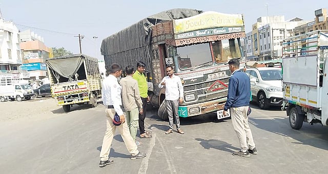 मंचर; पुढारी वृत्तसेवा : पुणे-नाशिक राष्ट्रीय महामार्गावर मंचर (ता. आंबेगाव) एस. टी. बसस्थानकासमोर मालवाहू ट्रकचा पाटा तुटल्याने चालकाच्या बाजूचे चाक निखळले. त्यामुळे ट्रक फरफटत दहा ते बारा फूट गेला. या वेळी रस्त्यावरून अनेक वाहने ये-जा करीत होती. मात्र, सुदैवाने मोठी दुर्घटना टळली. या घटनेमुळे वाहतूक कोंडी झाली होती. दुपारी साडेबाराच्या सुमारास मंचरहून पुण्याच्या दिशेला जाणार्या ट्रकचे चाक निखळल्यामुळे अन्य वाहनचालक गोंधळून गेले. त्याचवेळी बसस्थानकातून एक एसटी बस बाहेर पडत होती. बसचालकाने प्रसंगावधान राखून गाडी थांबवली. पुण्याहून येणार्या तीन ते चार कारही जागेवरच थांबल्या. त्यामुळे मोठी दुर्घटना टळली. या प्रकारामुळे येथे वाहतूक कोंडी झाली होती. बघ्यांची गर्दीही झाली होती.