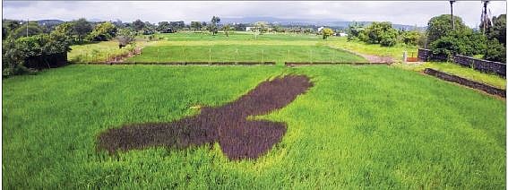 भरारी घेतलेल्या गरुडाचे हे चित्र हिरव्या- काळ्या भातरोपांच्या लावणीतून तयार केले आहे.