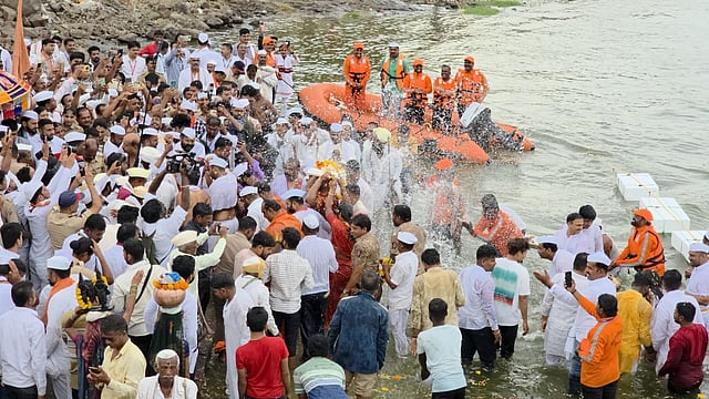मंगळवारी सकाळी ७ वाजून १० मिनिटांनी देहू संस्थांच्या वतीने व स्थानिक प्रमुख ग्रामस्थ, मान्यवरांच्या हस्ते नीरा नदी पात्रात पादुकांना शाही स्नान घालण्यात आले. नदीपात्रात पादुकांवर पाणी, दही, दूधाचा अभिषेक, चंदन, हळदीचा अभिषेक करून अष्टगंध, बुक्का लावून आरती झाली. यावेळी हजारो वैष्णवांनी तुकोबारायांचा जयघोष केला व पादुकावर पुष्पवृष्टी करण्यात आली. (Latest Pune News)