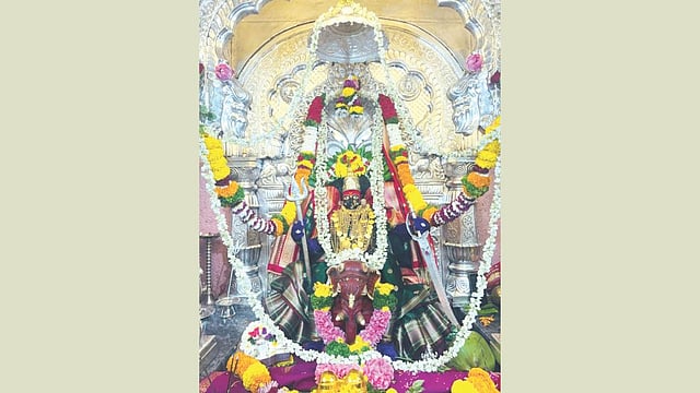 शिवरायांच्या आज्ञेवरून मोरोपंतांच्या हस्ते समारंभपूर्वक देवीच्या मूर्तीची प्रतिष्ठापना करण्यात आली (जुलै 1661). शिवाजी महाराजांनी देवीस नाना प्रकारचे रत्नजडित अलंकार, भूषणे वगैरे करून दिली. उदंड दानधर्म केला.महाराजांनी श्री भवानी देवीच्या व्यवस्थेसाठी स्वतंत्र संस्थानच स्थापून दिले. श्री भवानी मातेची पूजाअर्चा, उत्सव, इत्यादीबद्दलची पद्धत घालून दिली. महाल, मोकासे, सनदा देऊन देवीच्या संस्थानाच्या व्यवस्थेसाठी स्वतंत्र हवालदार, मुजुमदार, पेशवे, फडणीस, पुजारी, सेवेकरी, वगैरे नेमणुका वंशपरंपरेने करून दिल्या. महाराज स्वत:ला देवीचे भोपे म्हणजे पुजारी म्हणवत. या भोपेपणाची मुतालिकी म्हणजे प्रतिनिधित्व मंबाजी नाईक पानसरे यांना देण्यात आली.