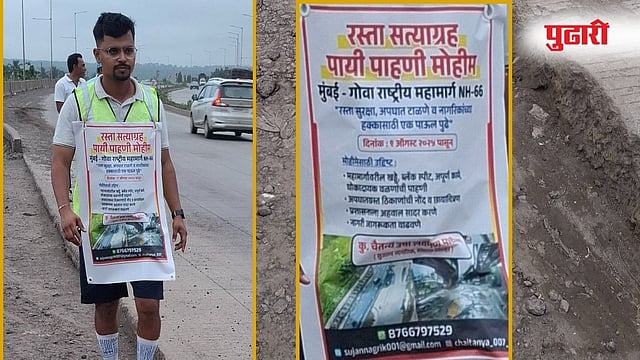 खड्डे आणि महामार्गाची दशा दाखवण्यासाठी पेण तालुक्यातील तरुणाचा पायी प्रवास