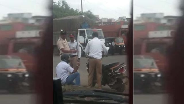 व्हिडिओमध्ये दिसते की, कळंबोली रोडपाली सिग्नलजवळ एका दुचाकीस्वाराला नियमाचे पालन केले नाही म्हणून वाहतूक पोलिसांनी थांबले. यावेळी वाहतूक पोलीस आणि दुचाकीस्वारामध्ये वाद सुरू झाला. याचवेळी दुचाकीच्या कागदपत्रांची मागणी करताना वाहतूक पोलीस दुचाकीची चावी काढण्यासाठी पुढे जातो. त्याचवेळी या वाहतूक पोलिसांनी दुचाकीस्वाराला जोराचा धक्का दिल्याने दुचाकीस्वार खाली पडल्याचे दिसून येत आहे. वाहतूक पोलिसांची ही दबंगगिरी पाहून नवी मुबई आणि पनवेल शहरात वाहतूक पोलिसांच्या दादागिरीची चर्चा होऊ लागली आहे.