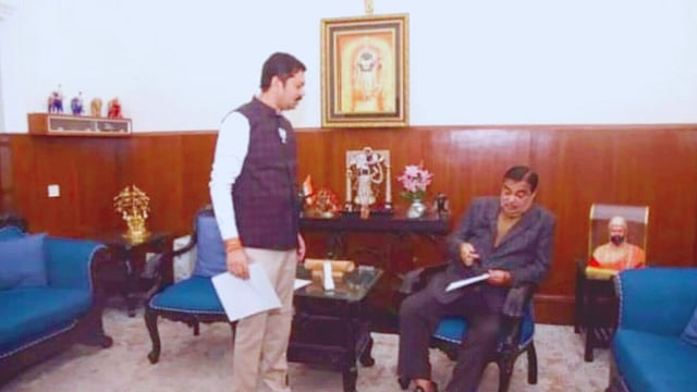 नेरळ ः कर्जत - मुरबाड या राष्ट्रीय महामार्गावर कर्जत चारफाटा येथील मध्य रेल्वेवरील असलेल्या अरुंद क्रॉसिंग ओव्हरक्रॉस ब्रिजमुळे नागरिकांना वाहतूक कोंडी व होणारे दैनंदिन हाल सहन करावे लागते. अनेक वर्षांपासून या ओव्हरक्रॉस ब्रिजच्या रुंदीकरणाच्या लोकांमधून होणाऱ्या मागणी संदर्भात भाजपाचे कर्जत - खालापूर विधानसभा मतदार संघाचे संर्पक प्रमुख किरण ठाकरे यांनी पुढाकार घेत केंद्रीय रस्ते वाहतूक आणि महामार्ग मंत्री नितीन गडकरी यांची दिल्ली येथे भेट घेऊन मांगणीचे निवेदन हे सादर केले आहे.