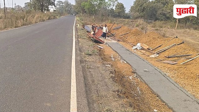 सार्वजनिक बांधकाम खात्याकडून रस्त्याचे काम सुरू असून सध्या धामोते गावापासून पुढे रस्त्याच्या बाजूला खोदकाम करून सुरक्षा भिंती बांधल्या जात आहेत.या संरक्षक भिंती बांधताना जमीन खोदली जात असून माती निघाल्यानंतर कोणत्याही प्रकारचे खडीकरण न करता थेट तेथे सिमेंट काँक्रीटीकरण केले जात असल्याचे दिसून येत आहे.त्या बाबत बिरदोले,कोदीवले गावातील ग्रामस्थांनी आवाज उठविला असता तेथे असलेल्या कर्मचारी यांना मराठी किंवा हिंदी भाषा बोलता येत नसल्याने कोणत्याही तक्रारी ठेकेदाराकडे या तक्रारी पोहचत नाहीत.