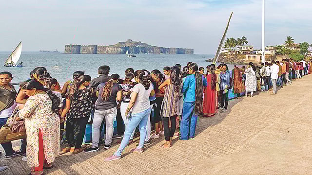 मुरुड जंजिरा ः मुरुड तालुक्यातील काशीद, मुरुड, नांदगाव व ऐतिहासिक जंजिरा किल्ल्यावर पर्यटकांनी मोठी गर्दी केली आहे.मुरुडसह श्रीवर्धन, अलिबाग, नागाव रेवदंडा, आक्षी, किहीम आदींसह सर्वच ठिकाणे पर्यटकांनी हाऊ स फुल झाली आहेत.राजपुरी येथे जंजिरा किल्ल्याचे तिकीट काढण्यासाठी पर्यटकांची गर्दी झाली.