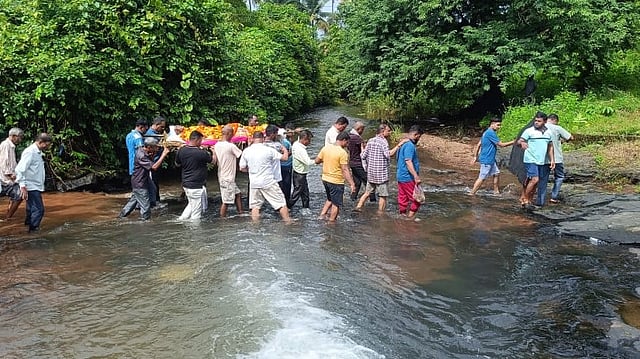 बोर्ली पंचतन हद्दीतील कोंडे गाव आजही विकासाच्या मूलभूत सुविधांपासून वंचित आहे. दोनच दिवसापूर्वी कोंडे येथील एका व्यक्तीचे निधन झाले.त्यावेळी ग्रामस्थांनी त्यांची अंत्ययात्रा भर पावसात नदीतील पाण्यातून घेऊन जावी लागली.