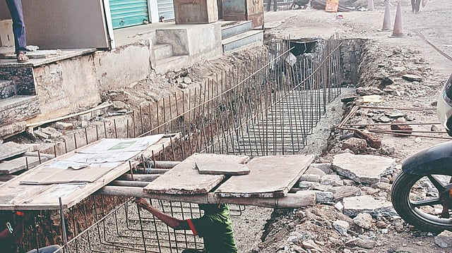 आटपाडी : आटपाडी शहरातील साई मंदिर ते लोकशाहीर अण्णा भाऊ साठे चौक या सुमारे वीस कोटी रुपये खर्चाच्या रस्त्याचे काम सध्या सुरू आहे. शहराच्यादृष्टीने महत्त्वाचा मानला जाणारा हा रस्ता भविष्यातील वाहतूक सुलभतेसाठी उपयुक्त ठरणार असतानाच, सध्या मात्र या कामाभोवती अनेक गंभीर प्रश्न निर्माण झाले आहेत.