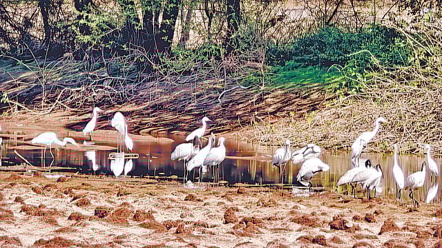 तलावातील पाणी उथळ होत असल्याने पक्ष्यांना खाद्य शोधणे अधिक सोयीचे झाले आहे. त्यामुळे करकोचे आणि बगळे तलावाकडेला मोठ्या थव्याने उतरून मासेमारी करताना दिसत आहेत. त्यांच्या हालचालीतून पाण्यावर उमटणाऱ्या तरंगांची नाजूक लय, निसर्गातील एक वेगळा आनंद देत आहेत. हळदकुंकू बदके पाण्यातून एवढ्या वेगाने ते धाव घेत असल्याने त्यांच्या हालचालींमधून ‘रेल्वेचा आवाज’ निर्माण होत असल्याचा रोमांचक अनुभव येत आहे.