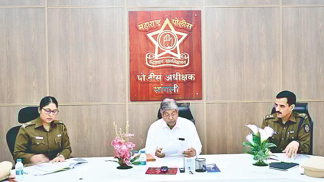 सांगलीत पोलिस अधीक्षक कार्यालयात शुक्रवारी आयोजित बैठकीत चंद्रकांत पाटील यांनी जिल्ह्यातील कायदा-सुव्यवस्थेचा आढावा घेतला. यावेळी पोलिस अधीक्षक संदीप घुगे, अप्पर अधीक्षक कल्पना बारावकर, स्थानिक गुन्हे अन्वेषणचे निरीक्षक संजीव झाडे, सतीश शिंदे, जिल्हा विशेष शाखेचे निरीक्षक संजय मोरे यांच्यासह अधिकारी उपस्थित होते.