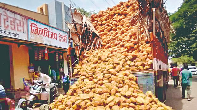 गेल्या आठ दिवसापासून नारळाची आवक कमी झाली आहे. यामुळे नारळ 30 रुपयावरुन 40 रुपये नग झाला आहे. शाळू, ज्वारी आणि तांदळाच्या दरात गेल्या सप्ताहातच वाढ झाली आहे. शाळू ज्वारी 4 हजार ते 4 हजार 500 रुपये क्विंटल आहे. तांदूळ 4,200 हजार ते 4600 रुपये क्विंटल झाला आहे. खाद्यतेलाचे दर महिन्यापासून स्थिर आहेत. गहू 3 हजार 700 ते 3 हजार 800 रुपये आहे. मसूरडाळ 75 ते 80 रुपये किलो झाली आहे. सूर्यफूल तेलाचा दर 154 रुपये झाला आहे. शेंगतेलाचा किरकोळ विक्रीचा दर 164 आहे. सरकी तेल डब्याचा दर (15 किलो) 2 हजार 300 रुपये आहे. अधिक मागणी असलेल्या तांदळाचा दर प्रति किलो 30 ते 70 रुपये आहे. शाळू, ज्वारी 50 ते 52, हायब्रीड 40 ते 42, गूळ 50 ते 55, रवा 50, तर मैदा 48 ते 50, मूग 120 व मसूरडाळ 80 रुपये किलो आहे.