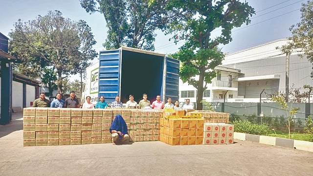 सांगली : राज्य उत्पादन शुल्कच्या मिरज विभागाने रविवारी सकाळी म्हैसाळ रोडवर छापा टाकून औषधाच्या नावाखाली नेण्यात येणारी गोवा बनावटीची 41 लाख 36 हजाराची देशी दारु जप्त केली. याप्रकरणी लभजित गुरमेज सिंह (वय 32 रा. पिलभित उत्तरप्रदेश) याला अटक करण्यात आली असून, यातील कंटेनरही जप्त करण्यात आला आहे. ही दारु गोवाहून नागपूरला नेण्यात येत असल्याची माहिती उघडकीस आली आहे.