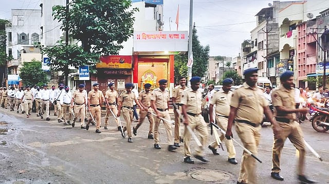 विशाळगड प्रकरणानंतर जिल्ह्यातील पोलिस यंत्रणा सतर्क झाली आहे. सोशल मीडियावरून आक्षेपार्ह पोस्ट करण्यावर सायबर शाखेकडून लक्ष ठेवले जात आहे. पोलिसांनी ठिकठिकाणी बंदोबस्तात वाढ केली आहे. समाजात शांतता राखली जावी, यासाठी पोलिसांच्या वतीने गुरुवारी जिल्ह्यात संचलन करण्यात आले. प्रत्येक पोलिस ठाण्याच्या हद्दीत संचलन झाले.सांगलीत कर्मवीर चौकातून रुट मार्चला सुरुवात झाली. पंचमुखी मारुती रोड, रिसाला रोड, बसस्थानक मार्गे मारुती चौकातील छत्रपती शिवाजी महाराज पुतळा परिसरात येऊन रुट मार्चची सांगता झाली.