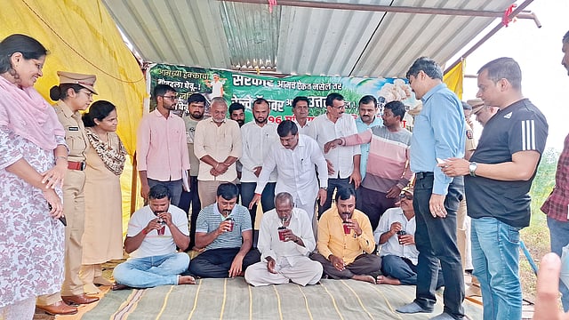 पलूस : वसगडे (ता. पलूस) येथील रेल्वेमुळे 195 गुंठे जमीन रेल्वेमुळे बाधित झाली होती. पण महसूल विभागाने केलेल्या मोजणीनुसार फक्त 55 गुंठे जमिनीचा मोबदला व त्याचे व्याज रेल्वे देण्यास तयार होती. त्यामुळे वसगडे येथील रेल्वे बाधित शेतकर्यांनी मागील 38 महिन्यांपासून जलसमाधी आंदोलन, रेल्वे रोको आंदोलन चालू केले होते. या आंदोलनामुळे अर्धे यश शेतकर्यांना मिळाले होते. परंतु 14 जुलैपासून शेतकर्यांना मिळणार्या मोबदल्याविषयी रेल्वे बाधित शेतकर्यांनी उपोषण सुरू केले होते. मागण्या मान्य झाल्याशिवाय उपोषण सोडणार नसल्याचा आक्रमक पवित्रा उपोषणकर्त्यांनी घेतला होता.