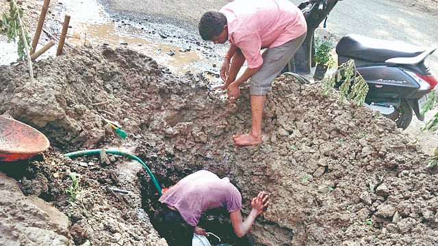 सांगली : सांगली-हरिपूर रस्त्याचे काम सुरू असताना पिण्याच्या पाण्याची पाईपलाईन फुटल्याने मोठ्या प्रमाणात गळती होऊन पाणी रस्त्यावर आले आहे. ही गळती थांबवण्यासाठी परिसरातील नागरिकांनी महापालिकेकडे वारंवार तक्रारी दिल्या, तसेच येथील नूतन नगरसेवकांनादेखील भेटून तक्रार दिली. याबाबत दैनिक ‘पुढारी’ने आवाज उठवला असता तत्काळ काम सुरू करण्यात आले आहे. स्थानिक नगरसेवकांनीही दोन दिवसात काम पूर्ण करून घेऊ, असे आश्वासन दिले.