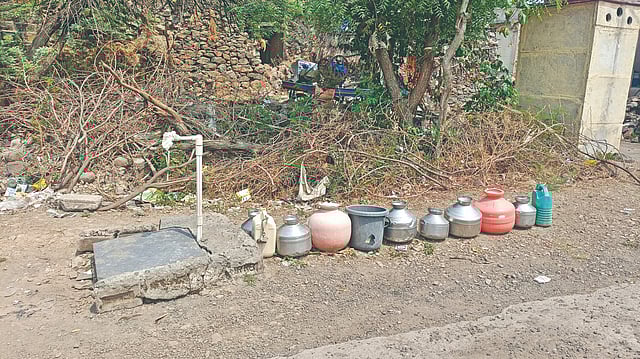 जत शहर : जत तालुक्यातील कोळगिरी गावात सध्या तीव्र पाणीटंचाई निर्माण झाली असून नागरिकांना पाण्यासाठी मोठी कसरत करावी लागत आहे. गावातील परिस्थिती इतकी गंभीर झाली आहे की, पाणी भरण्यासाठी नागरिकांना आधीच भांडी लावून रांगा लावाव्या लागत आहेत.