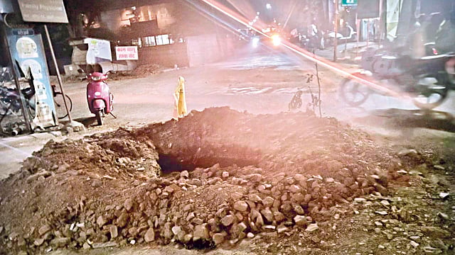 तुंबलेल्या गटारीचे पाणी रस्त्यावरील खड्ड्यांमध्ये साचल्याने वाहनधारकांचे अपघात होत आहेत. या अपघातांना जबाबदार कोण, असा प्रश्न विचारला जात आहे. महापालिका प्रशासनाने या परिस्थितीची गांभीर्याने दखल घेऊन रस्त्याचे काम त्वरित पूर्ण करावे. तसेच कामात दिरंगाई करणाऱ्या आणि कर्तव्यात कसूर करणाऱ्या बेजबाबदार कर्मचाऱ्यांवर कडक दंडात्मक कारवाई करावी, अशी आक्रमक मागणी परिसरातील नागरिकांमधून होत आहे.