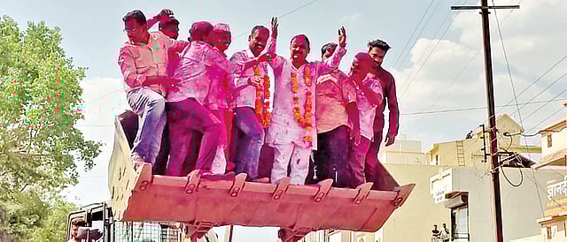 आटपाडी : पुढारी वृत्तसेवा : सांगली जिल्ह्याचे लक्ष लागलेल्या आटपाडी कृषी उत्पन्न बाजार समिती पदाधिकारी निवडणुकीत सभापती पदावर शिवसेना शिंदे गटाचे संतोष पुजारी आणि उपसभापती पदावर काँग्रेसचे राहुल गायकवाड यांची दहा विरुद्ध आठ मताच्या फरकाने निवड झाली. शिवसेना, काँग्रेस आणि रासप शिवसेना आघाडीने भाजपला धोबीपछाड दिली. बाजार समितीत नाट्यपूर्ण घडामोडीनंतर सत्तांतर झाले आणि पहिल्यांदाच भगवा फडकला. पुजारी यांच्या रुपाने धनगर समाजाला प्रथमच सभापतीपदाचा बहुमान प्राप्त झाला.