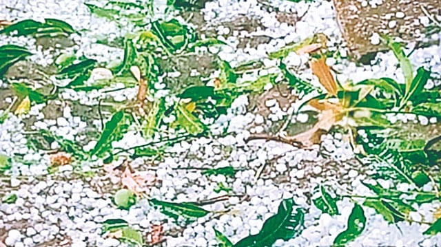 सांगली : सांगली जिल्ह्याच्या विविध भागांत सलग तिसऱ्या दिवशी अवकाळी पावसाने जोरदार हजेरी लावली. काही ठिकाणी झालेल्या गारपिटीमुळे काढणीला आलेली पिके पूर्णपणे उद्ध्वस्त झाली. बळीराजा पुन्हा एकदा संकटात सापडला आहे. शासनाने तातडीने पंचनामे करून भरपाई द्यावी, अशी मागणी केली जात आहे.