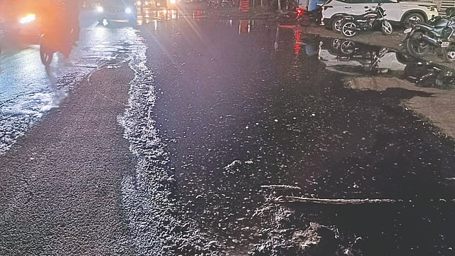 कोल्हापूर रस्त्यावरील चौपदरीकरणास प्रारंभ झाला आहे. या रस्त्याच्या कामापूर्वीच बाजूला गटारीचे काम करावे, अशी मागणी करण्यात आली होती. त्याप्रमाणे या रस्त्याच्या बाजूस मोठी गटार काढण्यासाठी कामाचा प्रारंभ झाला. दोन दिवसात कामाला गती आली आहे. पण या लोकांनी पाण्याची पाईप, गॅसची पाईप हे पाहिले देखील नाही. गटारीसाठी चर काढण्यात आली. यासाठी जेसीबीच्या साहाय्याने ही चर काढत असताना त्यांनी पाण्याची पाईपच फोडली. जवळ-जवळ दोन ते तीन तास या पाईपमधून कारंजा सुरू होता. बघता-बघता पाण्याचा डोह साचला. या साचलेल्या फूटभर पाण्यातून वाहनांना, नागरिकांना उशिरापर्यंत ये-जा करावी लागत होती. दरम्यान, या प्रकारात मोठ्या प्रमाणात पाण्याची नासाडी झाल्याने स्थानिक नागरिकांतून तसेच वाहनचालकांतून तीव्र संताप व्यक्त करण्यात येत होता. मात्र या प्रकाराबाबत रस्त्याचे काम करणार्यांना काहीच गांभीर्य नसल्याचे दिसून आले. या झाल्या प्रकाराची संबंधित विभागाने गांभीर्याने दखल घेऊन अशा घटनांची पुनरावृत्ती टाळावी, अशी मागणी नागरिकांतून होत आहे. हे जरी अजाणतेपणी झाले असले तरी पाण्याची नासाडी झालीच, पण नागरिकांना याचा त्रास देखील सहन करावा लागला.