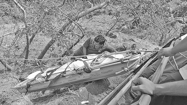 महाबळेश्वर : महाबळेश्वर - पोलादपूर मार्गावरील अंबेनळी घाटात दुचाकी 500 फूट खोल दरीत कोसळून दाम्पत्य ठार झाले होते. या दाम्पत्याचे मृतदेह दरीतून बाहेर काढण्यात आले. गुरुवारी मध्यरात्री पतीचा तर शुक्रवारी सकाळी पत्नीचा मृतदेह बाहेर काढण्यात आला. महाबळेश्वर ट्रेकर्स व प्रतापगड रेस्क्यू टीम यांच्या पथकाने ही मोहीम राबवली.