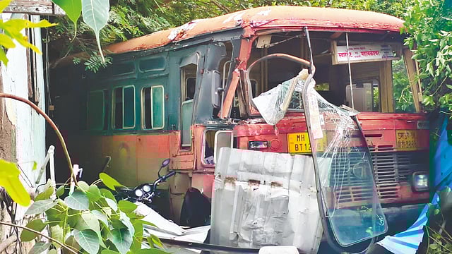 यावेळी ती पत्र्याचे कंपाऊंड तोडून पाण्याच्या टाक्या असलेले भिंतीला धडकून अडकली. अपघात झाल्यानंतर आगार व्यवस्थापक बिसमिल्ला सय्यद, पवन वाघेला, पोलिसांनी घटनास्थळी भेट दिली.