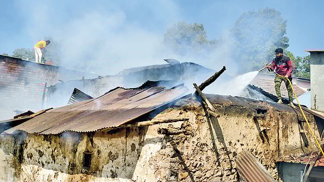 बिभवी येथील पांडुरंग शंकर कदम, विठ्ठल शंकर कदम, वसंत शंकर कदम, दत्तात्रय सावळाराम कदम, प्रभाकर सावळाराम कदम यांच्या घरांना सोमवारी आगीने वेढले. सकाळी 9 वा. अचानक धुराचे लोट पत्र्यामधून बाहेर पडताना दिसू लागले. काही क्षणात आगीने रौद्ररूप धारण केले. यादरम्यानच घरात असणाऱ्या दोन सिलेंडरचा स्फोट झाला. कानठळ्या बसणाऱ्या आवाजाने परिसर भेदरून गेला. या स्फोटामुळे आग आणखी फैलावली. संबंधीत कुटुंबिय बाहेरगावी गेले होते. आगीची घटना निदर्शनास येताच गावकऱ्यांनी त्यांना बोलावून घेतले. तसेच आग आटोक्यात आणण्यासाठी प्रयत्न सुरू केले. परंतू आग मोठ्या प्रमाणात फैलावल्याने आटोक्यात येत नव्हती. अग्नीशमन दलाला फोन करून तात्काळ बोलावून घेतल्याने मोठा अनर्थ टळला. अग्निशमन दलाच्या प्रयत्नाने आग आटोक्यात आणण्यात यश आले. मात्र, तोपर्यंत घरातील सर्व धान्य, कपडे, व इतर साहित्य जळून खाक झाले. त्यामुळे या कुटुंबाचा संसार उघड्यावर पडला.