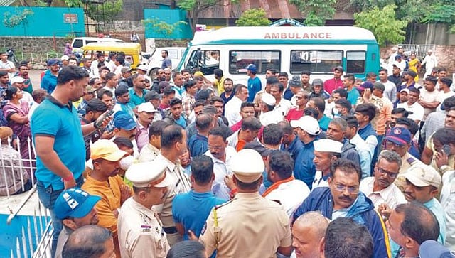 सातारा; पुढारी वृत्तसेवा : खुनी हल्ल्यात मृत्युमुखी पडलेल्या पांगारे, ता. सातारा येथील राहुल शिवाजी पवार (वय 30) या तरुणाचा मृतदेह ग्रामस्थांनी रविवारी दुपारी 1 वाजता रुग्णवाहिकेसह पोलिस मुख्यालयासमोर आणला. त्यामुळे मुख्यालयासमोर काही वेळ तणावाचे वातावरण निर्माण झाले होते. पसार असलेल्या संशयितांना अटक करून त्यांना कडक शिक्षा करावी, अशी मागणी करत ग्रामस्थांनी घोषणाबाजी केली. दरम्यान, यावेळी पोलिसांनी संशयितांवर कारवाई करण्याचे आश्वासन दिल्यानंतर मृतदेह ठेवलेली रुग्णवाहिका ग्रामस्थांनी पांगारेकडे नेली.