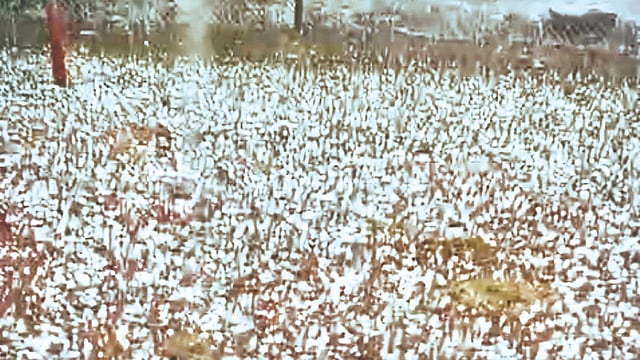 खटाव : खटाव तालुक्याच्या उत्तर भागातील मोळ परिसरात बुधवारी दुपारनंतर साडेचार वाजता गारपीट झाली. गारांसह झालेल्या पावसाने शेतातील उभी पिके भुईसपाट झाली, तर शेतात काढून ठेवलेली पिकेही भिजल्याने शेतकऱ्यांचे अतोनात नुकसान झाले.
