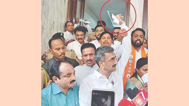 शिवाय, कामेश कांबळे हेही शशिकांत शिंदे व मकरंद पाटील यांच्यासमवेत आले. शंभूराज देसाई यांनी अनिल देसाई व संदीप मांडवे यांना घेऊन जिल्हा परिषदेत एन्ट्री केली. त्याचवेळी कामेश कांबळे आत जात असताना शिवेंद्रराजे यांची आक्रमक एन्ट्री जिल्हा परिषदेच्या पोर्चमध्ये झाली. तिथेच कामेश कांबळे यांच्यावरून तीनही मंत्र्यांमध्ये हातापायी झाली, तणातणी झाली. शिवेंद्रराजे, शंभूराज देसाई व मकरंद पाटील यांच्यात जोरदार शाब्दिक चकमक झाली. शिवेंद्रराजे भोसले यांचे आक्रमक रूप त्यावेळी अनेकांना दिसले. या झटापटीतच अनिल देसाई व संदीप मांडवे हे सभागृहात मतदानासाठी जात असताना पोलिसांनी त्यांना ताब्यात घेतले. शंभूराज देसाई यांच्या हे लक्षात येताच त्यांनी पोलिसांना थांबवण्याचा प्रयत्न केला. दोन्ही सदस्यांचे हात शंभूराज देसाई यांनी धरले. मात्र, पोलिसांची व शंभूराज देसाई यांची जोरदार झटापट झाली. शंभूराज देसाई यांचा हात झिडकारत पोलिसांनी दोन्ही सदस्यांना ताब्यात घेतले. त्यावेळी शंभूराज देसाईंच्या बोटाला दुखापत झाली व ते रक्तबंबाळ झाले. तातडीने डॉक्टरांना पाचारण करून देसाई यांच्या हाताला पट्टी करण्यात आली.
