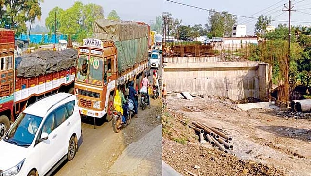येथील उत्तर मांड नदीवर महामार्गाच्या पूर्व व पश्चिम बाजूला सुरू असलेल्या सेवा रस्त्यांच्या पुलांचे काम प्रगतीपथावर आहे. तसेच पुढे मसूर फाटा येथे अंडर पास पुलाचे कामही युद्धपातळीवर सुरू असल्याने मांड नदी पासून महामार्गावरील वाहतूक सर्व्हिस रस्त्यावर वळविण्यात आली आहे. मात्र याठिकाणी अरुंद सर्व्हिस रस्ता व मसूर मार्गावरून येणारी लहान मोठी वाहने विरुद्ध दिशेचा वापर करत असल्याने याठिकाणी वाहतूक कोंडीची समस्या मोठ्या प्रमाणात निर्माण होत आहे. तर कराड दिशेकडून येणारे व मसूर कडे जाणारे प्रवाशी सुद्धा विरुद्ध दिशेने येण्याचा प्रयत्न करीत असल्याने येथे मोठ्या प्रमाणात वाहतूकीची कोंडी निर्माण होण्याबरोबरच लहान मोठे अपघात होवू लागले आहेत. वास्तविक पाहता महामार्गालगत अनेक गावे असल्याने या गावातील शेतकरी, ग्रामस्थ, विद्यार्थी यांना रस्त्याचे काम सुरू असल्याने शंभर मीटर अंतरासाठी सुमारे एक ते दोन कि.मी.चा पल्ला पार करावा लागू नये म्हणून अनेकजण शॉर्टकटचा वापर करीत आहेत. मात्र वाहनधारकांना असा शॉर्टकट जीवावर बेतत असल्याने वाहनधारकांनी सुद्धा योग्य ती दक्षता घेणे गरजेचे आहे.