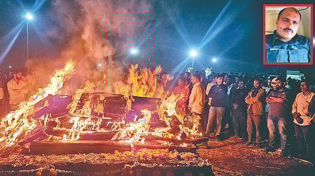तरडगाव : बारामती येथे झालेल्या विमान दुर्घटनेत कर्तव्यावर असताना वीरमरण आलेले उपमुख्यमंत्री अजित पवार यांचे सुरक्षा रक्षक, तरडगाव येथील सुपुत्र मुंबई पोलिस विशेष सुरक्षा अधिकारी हेड कॉन्स्टेबल विदीप दिलीप जाधव यांच्यावर बुधवारी रात्री 11 वाजता तरडगाव येथील पालखी तळावर शासकीय इतमामात अंत्यसंस्कार करण्यात आले.