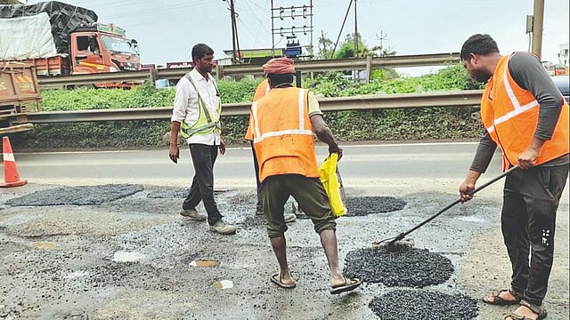 सातारा; पुढारी वृत्तसेवा : पुणे-बेंगलोर महामार्गाची अवस्था दयनीय झाली आहे. ठिकठिकाणी खड्डे पडल्याने या रस्त्यावरून जीव मुठीत धरून प्रवास करावा लागत आहे. खड्ड्यांमुळे अपघाताचे प्रमाण वाढले होते. याबाबत दै. 'पुढारी'ने सलग दोन दिवस सडेतोड वृत्त प्रसिद्ध करताच राष्ट्रीय महामार्ग प्राधिकरण खडबडून जागेे झाले. रविवारी सकाळी सकाळीच यंत्रणेने खड्डे मुजवण्याची मोहीम हाती घेतली. दरम्यान, ही दुरूस्ती तोंडदेखली न करता दर्जेदारपणे खड्डे मुजवण्याची मागणी होत आहे.