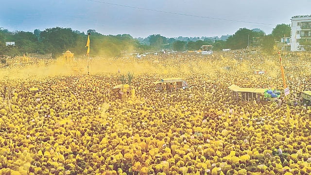 फुलांनी सजविलेल्या छत्र्या, चोपदारांचा घोडा, सासनकाठी, पालखी, मानाचे गाडे आणि त्यामागोमाग रथातून विराजमान झालेले श्री खंडोबा-म्हाळसा असा भव्यदिव्य शाही सोहळा मुख्य चौकात दाखल होताच भाविकांनी भंडाराखोबऱ्याची उधळण करत ‘यळकोट यळकोट जय मल्हार’, ‘सदानंदाचा येळकोट’ आणि ‘खंडोबाच्या नावानं चांगभलं’चा गजर केला. मुख्य मिरवणूक तारळी नदीवरील पुलावरून दक्षिण पात्रात प्रवेश करताच लाखो भाविकांनी एकाचवेळी भंडाराखोबऱ्याची उधळण करीत खंडोबा-म्हाळसा यांचा जयजयकार केला. खचाखच भरलेले तारळी नदीचे दक्षिण पात्र अक्षरशः पिवळेधमक झाले होते. सायंकाळी मिरवणूक मारुती मंदिर मार्गे बोहल्याजवळ पोहोचली. यळकोट यळकोट जय मल्हार च्या जयघोषाने संपूर्ण पाल नगरी भक्तीरसात न्हाऊन निघाली होती.