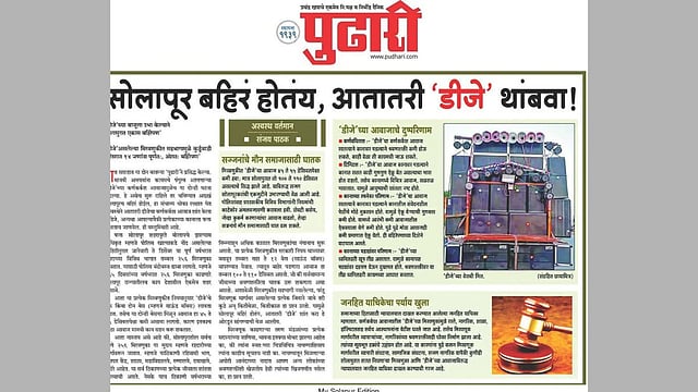 या पार्श्वभूमीवर दैनिक ‘पुढारी’ने सर्वात प्रथम मार्च महिन्यापासून डीजेविरुद्ध वार्तांकन करत जनजागृतीस सुरुवात केली होती. वृत्त, विशेष लेख, स्तंभलेखांद्वारे ‘पुढारी’ने ‘डीजे’विरुद्ध जनमत तीव्र करण्यात यश मिळवले. अखेर ‘पुढारी’च्या या मानवतावादी लढ्यास आज यश आले, ते जिल्हाधिकार्यांनी काढलेल्या डीजे, लेसर लाईट शो बंदीच्या आदेशाने. डीजे, लेसर लाईटवर बंदीची भूमिका ‘पुढारी’ने घेतली. त्यास सजग सोलापूर मंच, ज्येष्ठ नागरिक संघटना, कान-नाक-घसा तज्ज्ञ, विद्यार्थी-विद्यार्थिनींसह, नागरिकांनी उत्स्फूर्त प्रतिसाद दिला. डीजे व लेसर लाईटमुळे जीवितास धोका, इतर शारीरिक दुष्परिणाम होत असून त्यावर बंदी घालण्याची मागणी निवेदनाद्वारे जिल्हाधिकार्यांकडे केली होती. या सगळ्याची दखल घेत जिल्हाधिकार्यांनी डीजे, लेसर लाईटवर बंदी घातली.