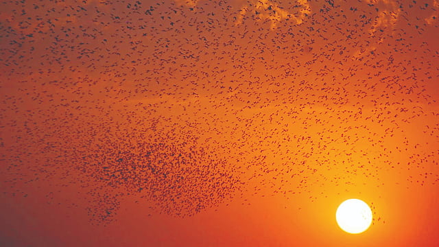 पक्ष्यांचा दिनक्रम : स्थलांतर करून आल्यानंतर या पक्ष्यांच्या अनेक थवे मुक्कामासाठी एक मोठमोठे झाडं असलेले ठिकाण निश्चित करतात. या पक्ष्यांतील वैशिष्ट्य म्हणजे दिवसभर चरून ठरलेल्या ठिकाणी झाडांवर किंवा झुडपांवर आसनस्थ होतात. हवाई कसरत करतात. वेगावर नियंत्रण ठेवण्यात तरबेज असतात. झाडांवर विसावून दहा मिनिटे एकच कलकलाट करत आपसात संवाद साधतात. अंधार दाटून आला की एकदम चिडीचिप होऊन झोपी जातात. सूर्योदयाबरोबर हे पक्षी पुन्हा सुमारे दहा-बारा मिनिटे हवेत घोंगावत कसरत करून नंतर सर्व दिशेने चरण्यासाठी विखरून जातात.