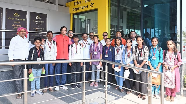 सोलापूर : बहुप्रतीक्षेत सोलापूर ते हैद्राबाद ही विमानसेवा आजपासून सुरू झाली. पहिल्याच दिवशी राऊंड टेबल इंडिया, सोलापूर शाखेच्या वतीने सावळेश्वर येथील न्यू समता प्रशालेतील 7 मुली, 3 मुले आणि एका शिक्षकांना त्यांच्या आयुष्यातील पहिल्या विमानप्रवासाचा अनोखा अनुभव देण्यात आला. विद्यार्थ्यांच्या चेहऱ्यावरचा आनंद वाहत होता. फ्लाय 91 विमान कंपनीने ही सेवा सुरू केली.