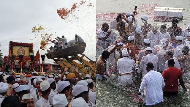 याही वर्षी सकाळी ७ वाजून १० मिनिटांनी देहू संस्थांच्या वतीने व स्थानिक प्रमुख ग्रामस्थ, मान्यवरांच्या हस्ते नीरा नदी पात्रात पादुकांना शाही स्नान घालण्यात आले. नदीपात्रात पादुकांवर पाणी, दही, दूधाचा अभिषेक, चंदन, हळदीचा अभिषेक करून अष्टगंध, बुक्का लावून आरती झाली. यावेळी हजारो वैष्णवांनी तुकोबारायांचा जयघोष केला व पादुकावर गुलाब पुष्पवृष्टी करण्यात आली. यावेळी सोहळा प्रमुख ह भ प विशाल महाराज मोरे, अध्यक्ष पुरुषोत्तम महाराज मोरे, भानुदास महाराज मोरे, माणिक महाराज मोरे, पुंडलिक महाराज देहूकर प्रमुख उपस्थित होते.