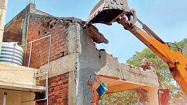 सोलापूर : शहरातील साहित्यरत्न अण्णाभाऊ साठे चौक परिसरात सोलापूर महापालिकेच्या अतिक्रमण प्रतिबंधक विभागाने मंगळवारी मोठी कारवाई करत एन.जी. मिल कंपाऊंडमधील न्यू गांधी कॉलनीतील अतिक्रमित बांधकाम जमीनदोस्त केले. कारवाईदरम्यान अतिक्रमणधारक व अधिकाऱ्यांमध्ये शाब्दिक चकमक झाली. विरोध झुगारून अखेर ही कारवाई पूर्ण केली.