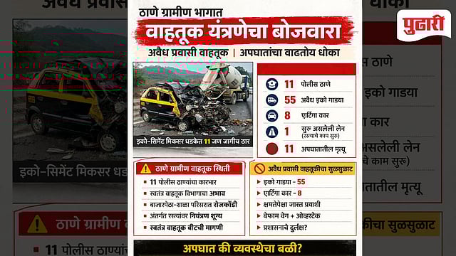 ठाणे: बेफाम वेग, बेकायदेशीर प्रवासी वाहतूक आणि प्रशासनाची उघडीपणे चाललेली डोळेझाक यामुळे भीषण अपघातात तब्बल 11 जणांचा जागीच मृत्यू झाला आहे. या दुर्घटनेने संपूर्ण परिसर हादरला असून संतापाची लाट उसळली आहे. दररोज हजारो कामगार व प्रवासी माळशेज घाटाच्या पायथ्यापासून मुंबईकडे जीव मुठीत धरून प्रवास करतात. मात्र त्यांच्या सुरक्षेची जबाबदारी कोणाची? मुरबाडहून धावणाऱ्या खासगी इको गाड्या अक्षरशः मृत्यूचे सापळे ठरत आहेत.