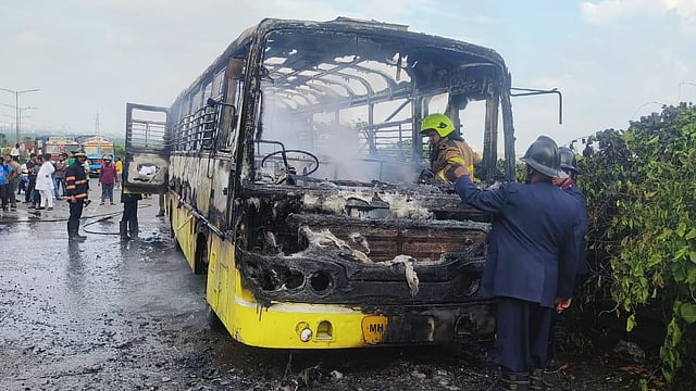 मुंब्रा कौसा येथील सिम्बॉयसिस शाळेची बस विद्यार्थ्याना सोडुन परतीच्या मार्गावर असताना अचानक शॉर्टसर्किट झाल्याने बसला आग लागली. आग लागताच चालक आणि क्लिनर (मदतनीस) सुदैवाने बसच्या बाहेर पडल्याने बचावले आहेत. बसमधील विद्यार्थ्यांना बसमधून उतरवले आणि काही अंतरावर जाताच स्कूल बस पेटली. कौसा येथील सिंबोसिस शाळेतील जवळपास 35 ते 40 विध्यार्थीना शाळेच्या बसमधून घरी सोडण्यात आले. त्यानंतर रिकामी बस ठाणे-पनवेल मार्गावरील मुंब्रा देवी जवळ आली असता दुपारी 3 वाजण्याच्या सुमारास अचानक पेट घेतला.