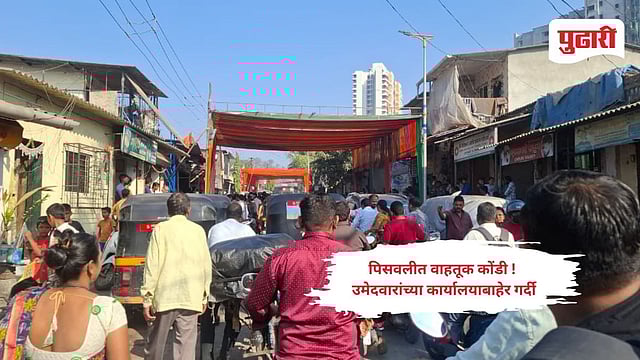 ठाणे : कल्याण-डोंबिवली महानगरपालिका क्षेत्रातील २७ गावांमध्ये आज मतदानाला शांततेत सुरुवात झाली असली, तरी आडीवली, ढोकळी, पिसवली आणि काकाचा ढाबा परिसरात उमेदवारांच्या कार्यालयांबाहेर मतदारांची मोठी गर्दी झाल्याचे चित्र दिसून आले आहे. विशेषतः पिसवली भागात रस्त्यावर उमेदवारांच्या प्रतिनिधींनी मतदारांसाठी स्टॉल उभे केल्याने वाहनांची ये-जा अडथळली गेली आणि लांबच लांब रांगा लागून वाहतूक कोंडीची समस्या निर्माण झाली आहे.