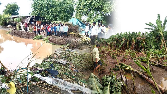 बुलढाणा; पुढारी वृत्तसेवा : मुसळधार पावसाने पुन्हा एकदा हाहाकार माजवला. नांदुरा तालुक्यातील लोणवडी, खडदगाव पिंपळखुटा धांडे व माळेगाव गोंड या गावात ढगफुटी सदृश्य पाऊस झाला आहे. अचानक आलेल्या पावसामुळे लोणवडी गावात शेती सोबतच शेतकऱ्यांचे पशुधनही निसर्गाच्या भक्ष्यस्थानी पडून 30 ते 35 जनावरे दगावली. तर नांदुरा तालुक्यातील तूर, कपाशी, मका, ज्वार, फळबाग अशा एकूण 7843 हेक्टरवरील पिकांचे अतिवृष्टीमुळे बाधीत झाल्याने शेतकऱ्यांच लाखोंचे नुकसान झाले आहे. तर मुलाची औषधी आणण्यासाठी बाहेर गेलेला 28 वर्षीय तरुण पुरात वाहून गेल्याने त्याचा मृत्यू झाला.