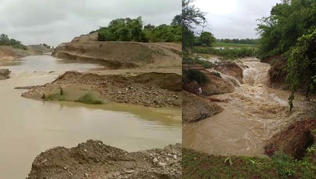 चंद्रपूर जिल्ह्यात तिन दिवसांपासून संतंतधार पाऊस सुरू आहे. शनिवारच्या रात्री मुसळधार पाऊस कोसळल्याने एकाच रात्री नदी नाले तलाव, लघू व मध्यम सिंचन प्रकल्पातील पाणी साठ्यात वाढ झाली. मुसळधार पावसाचा वेग वाढतच राहल्याने नागभीड तालुक्यातील तळोधी (बा.) परिसरात निर्माणाधीन असलेल्या गोसेखूर्दच्या उजव्या कालव्याची पाळ फुटली. त्यामुळे तो पाणी लगतच्या लखमापूर परिसरातलील तलावात घुसला. त्यामुळे तलावातील पाण्याची पातळी वाढून ओव्हर फ्लो फुटून लगतच्या निलेश पोशट्टीवार यांच्या शेतात घुसला. त्यामुळे नुकताच रोवणे करण्यात आलेले धानपिकाचे मोठ्या प्रमाणात नुकसान झाले. पिकासह शेतजमिनही खरडली आहे. उजवा कावा व तलावाच्या फुटलेल्या ओव्हर फ्लोमधून अजूनही पाण्याचा विसर्ग होत आहे.