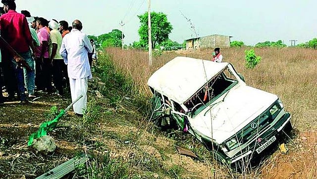 चिमूर तालुक्यातील भिसी येथून लग्नाचे वऱ्हाड घेऊन क्रूझर (एमएच ३२ एएच ०९५७) वाहन आंबोलीकडे जात होते. पुयारदंड गावाजवळ आले असता वाहनचालकाचे नियंत्रण सुटल्याने वाहन उलटले. यात दोघांचा मृत्यू झाला तर नऊ जण जखमी झाले. वाहनचालक अमोल किसन वाघ (वय २७) रा. भिसी, गार्गी संजय मानकर (वय ४), लक्ष्मण गायकवाड ( वय ६७) , स्वाती मानकर (वय २१), शांता दडमल (वय ४९) , ज्योत्स्ना मानकर ( वय ३७), नीळकंठ जांभुळे (५७), भगवान गुडधे (वय ७०) सर्व रा.आंबोली अशी जखमींची नावे आहेत. या घटनेची भिसी पोलिसांना माहिती मिळताच पोलीस उपनिरीक्षक सचिन जंगम, सहायक पो. नि. जांभळे घटनास्थळी दाखल झाले. जखमींना भिसी येथील प्रा. आ. केंद्रात दाखल करण्यात आले. जखमींना पुढील उपचारासाठी नागपूरला हलविण्यात आले आहे.