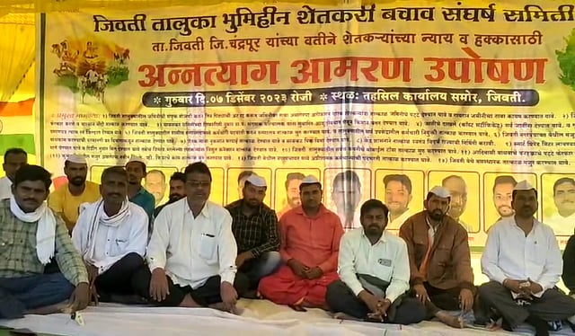 तीन पिढ्यांची अट रद्द करून ताब्यात असलेल्या जमिनीचे पट्टे अतिक्रमणधारकांना देण्यात यावे. संगणक परिचालक यांना किमान वेतन देण्यात यावे, सर्व जातींना जातीचे दाखले व गृह चौकशीनुसार जात वैधता प्रमाणपत्र स्वजिल्ह्यातच देण्यात यावे. ग्रामीण रुग्णालयाची पदभरती करून तत्काळ सर्व उपकेंद्रात कर्मचाऱ्यांची नियुक्ती करावी. केंद्र सरकारने विदर्भ राज्याची निर्मिती करावी. आदी मागण्यांकरीता 7 डिसेंबर 2023 पासून तहसील कार्यालयासमोर शेतकरी भूमिपुत्र उपोषणाला बसलेले आहेत.