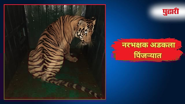 चंद्रपूर : चिमूर तालुक्यातील भिसी-शंकरपूर-आंबोली-आसोला शेतशिवारात दहशत माजवणारा नरभक्षक ‘कालू’ वाघ अखेर वनविभागाच्या पिंजऱ्यात अडकला. शंकरपूर येथील ईश्वर भरडे यांचा बळी घेतल्यापासून या वाघाने परिसरात भीतीचं साम्राज्य निर्माण केलं होतं. नागरिकांचा चक्काजाम आंदोलनानंतर वनविभागाने तातडीने मोहीम राबवत आज सोमवारी सायंकाळी या वाघाला जेरबंद करण्यात यश मिळविले आहे.