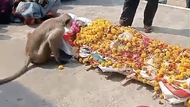 याबाबत अधिक माहीती अशी की, वरोरा तालुक्यातील पिपंळगाव येथील अनुसया मारोती धवणे यांचे बुधवारी (दि.२९) वृध्दापकाळाने निधन झाले. त्यांच्या अंत्यसंस्काराच्या वेळी अचानक एका वानराचे आगमण झाले. अंत्यसंस्काराला नागरिकांची गर्दी असल्याने वानर जवळपास भटकत राहीले. त्यानंतर मृतदेह स्मशानभूमीत नेण्यात आला. ते वानर थेट स्मशानभूमीत आले. तिथे त्याने आश्चर्यकारकरित्या मृतदेहाला कवटाळले आणि ते गहिवरू लागले. अनुसयाबाईसोबत काही त्याचे नातेच असावे असा हा प्रसंग होता. हा प्रसंग अनेकांनी कॅमेऱ्यात टिपला. हा प्रसंग आज बुधवारी वरोऱ्यातील पिंपळगावात घडल्यानंतर या प्रसंगाचे व्हिडीओ व्हायरल झाले. या प्रसंगाची सर्वत्र चर्चा सुरू आहे.