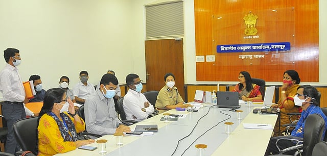 नागपूर विभागातील सर्व जिल्हाधिकाऱ्यांची विभागीय आयुक्त प्राजक्ता लवंगारे-वर्मा यांनी आज दूरदृश्य प्रणालीद्वारे आढावा बैठक घेतली. नागपूरच्या जिल्हाधिकारी विमला आर, महापालिका आयुक्त राधाकृष्णन बी, जिल्हा परिषदेचे मुख्य कार्यकारी अधिकारी योगेश कुंभेजकर याच्यासह पोलीस आयुक्त अश्वती दोरजे, जिल्हा पोलीस अधीक्षक विजयकुमार मगर, पोलीस उपायुक्त बसवराज तेली, महापालिकेचे अपर आयुक्त राम जोशी, शासकीय वैद्यकीय महाविद्यालयाचे अधिष्ठाता डॉ. सुधीर गुप्ता, आरोग्य उपसंचालक डॉ. संजय जयस्वाल, जिल्हा शल्य चिकित्सक डॉ. देवेंद्र पातुरकर, जिल्हा आरोग्य अधिकारी दीपक सेलोकर व कोविड टास्क फोर्सचे प्रतिनिधी यावेळी उपस्थित होते.